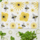 Una toalla de cocina con un modelo de las abejas, de las flores, y de los lunares de la miel.