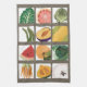 Coma sus frutas y veggies-de arriba a abajo, de las frutas y verduras de las características de esta toalla de cocina a partir del invierno a través de la primavera, del verano, y de la caída. Industrial original 2012 de la cabaña del © de los ilustraciones.