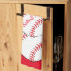 Esta toalla de cocina cuenta con softball rojos y blancos rodeados de un fondo rojo. El texto dice: Mamá de Softball. Personalizar fácilmente el texto para un hincha especial de deportes o elimina por completo. Ideal para el Día de la Madre o en cualquier época del año.