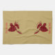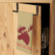 Mostrada en un color dorado mate, esta toalla de cocina tiene una cabeza de alce de mango rojo y negro y de búfalo en ambos extremos, centrada junto con el saludo de Feliz Navidad. Personalizar esta toalla o compra como se muestra.