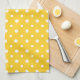 Toalla de cocina de moda o toalla de té, con un patrón de puntos de polka gigantes sobre un fondo amarillo dorado; de la colección "Daisychain" (posh y páintero).
