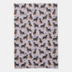 Perros de la Cute Rottweiler se sientan y se quedan con abrigos negros y tostados con huesos de perro dispersos y patrones de huellas.