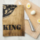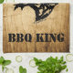 Personalice esta exclusiva toalla de cocina de toro "One of a Kind". Incluye una silueta de alce de toro negro sobre un fondo de madera rústica y las palabras... ¡BBQ KING! Diseño De Arte Original Por El Artista Kerry Miller!