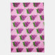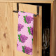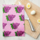 Toalla de cocina con ilustracion de uvas violetas sobre un fondo lila pálido.