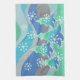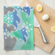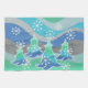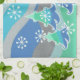 Un moderno y estilizado paisaje invernal con pinos espumosos y copos de nieve. Toalla de cocina con un diseño de personalizable verde, azul, gris plateado y blanco para que usted pueda personalizar con su propio texto, imágenes e ideas. Imagen creada con un dibujo de lápiz de color mejorado digitalmente.