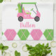 Toalla de cocina en monograma de golf rosa y verde