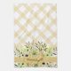 Personalice esta linda toalla de cocina con su nombre o mensaje. Un diseño floral dulce contra una ventana amarilla de verificación con líneas diagonales.