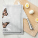 Personalice un regalo único para sus amigos o familiares con una toalla de cocina personalizada con mariposa de cobre. El diseño de las toallas incluye un par de mariposas vibrantes que descansan sobre una vina floral blanca sobre un fondo gris claro. Artículos de regalo adicionales disponibles con este diseño así como una variedad de colores.