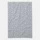 Toalla de cocina gris con un patrón de copos de nieve como de encaje.
