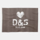 Toalla de cocina de grano de madera marrón oscura vintage para novios o novios. Diseño rústico de moda de campo para boda o hogar. Complementos de Shabby elegantes para la pareja matrimonial.