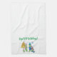 Vacaciones HapPEA con una familia de guisantes personalizados en esta toalla de cocina. Arte acuarela de NautiPainter.