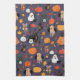 Toalla de mano para perros disfrazados de Halloween. Perros ilustrados con disfraces de Halloween que incluyen un fantasma, una bruja, Harry Potter, Ty Beanie Baby, Peter Pan, un murciélago y un ratón. El diseño también incluye calabazas y maíz dulce. Perfecta adición a cualquier cocina para la temporada de Halloween.