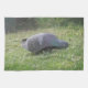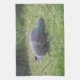 Esta impresionante toalla de cocina muestra una fotografía de una pichón salvaje tomada en mi jardín trasero. El pájaro estaba picando en el pasto buscando semillas que habían sido derribadas de un alimentador de aves. Al bajar la cabeza a picotear, cerró los ojos y, como resultado, parece que está durmiendo.