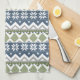 Capas de patrones inspirados en diseños encontrados en sudaderas nórdicas crean un maravilloso sentimiento invernal con copos de nieve, montañas y árboles verdes.