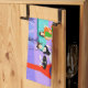 La toalla de cocina del Fiesta de cócteles tropical retro es intoxicante en su detalle. El diseño personalizado presenta el tipo de fiesta de cócteles extremadamente sofisticado que normalmente sólo se ve en películas de los años 60. Hay una sala de estar moderna de mediados de siglo llena de fiesteros que disfrutan de una decoración marcadamente violeta. Una mujer encantadora con el uniforme de criada francesa lleva una bandeja de martinis. Ella está parada al lado de una chimenea roja de conos con un fuego abrasador. En el centro de la sala, una pareja atractiva está sentada en sillas de huevo naranja. La mujer lleva puesto un vestido verde y brillante. El hombre lleva puesto un traje negro con corbata roja. Cada uno lleva un martini. Otra pareja se está volviendo acogedora bajo una araña colgante, amarilla y sputnik. El distinguido caballero de cabello blanco lleva puesto un traje azul, camisa azul clara y corbata roja. También está sosteniendo un martini en cada mano, mostrando al mundo que sus días de fiesta están lejos de terminar. Su compañero es una rubia con un vestido rojo impresionante. Detrás de esta escena, podemos ver a través de las paredes de vidrio del suelo al techo. El escenario al aire libre cuenta con una piscina redonda de color turquesa. Podemos ver la silueta morada de una mujer sumergiendo sus piernas en el agua. Entre las paredes de piedra morada, hay siluetas de palmeras. También se ven las siluetas de los bailarines y de los fiesteros parlantes. Si hay algo que esto prueba, es que, mientras la gente que vive en casas de vidrio no debería arrojar piedras, ¡definitivamente deberían arrojar fiestas!