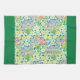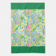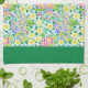 Toalla de cocina o toalla de té muy bonito, con un patrón de primrosis rosa, amarilla y azul, de una acuarela pintada a mano por Judy Adamson. El borde de la toalla está en Forest Green, pero hay otros colores disponibles.