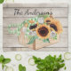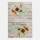 Hermosa toalla de baño de madera y girasol, personalizable con tu nombre