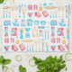 Utensilios de cocina en acuarela sobre fondo blanco.