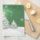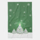 Añada un toque vacacional a su cocina con esta toalla de cocina verde de árbol de Navidad. El diseño de las toallas incluye un trío de árboles de Navidad decorados con nieve, con un fondo verde y copos de nieve cayendo. También hay artículos de regalo y de vacaciones disponibles con este diseño.
