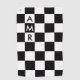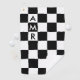 La toalla de personalizado de golf presenta un audaz patrón de tablero de ajedrez en blanco y negro con un monograma de personalizable. Agregue 3 iniciales o números en la barra lateral para personalizarla. El patrón geométrico fresco está hecho de filas de cuadrados blancos y negros alternantes. Hace un gran regalo para el amante del golf en su vida. Para ver más artículos en blanco y negro bajo control, haga clic en el enlace "Artes de Rocklawn" de abajo. Imagen creada digitalmente.