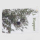 Fotografía de un águila calva norteamericana en un árbol de coníferas que tiene muchos conos de pino colgando de sus ramas. El águila madura está encaramado en una delgada extremidad que recorre el paisaje. El cielo está cubierto por una nube gris clara, lo que indica una temperatura fría. Derechos reservados ©2021 Kimberly J Tilley.