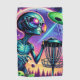 Arte alienígena de golf en disco. Colorido extraterrestre lanzando un disco en el espacio exterior.