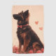 el Dog está situado entre rosas rosas rojas y rosas rosas, rodeado de corazones pastel. El diseño, limpio, moderno y de tonos suaves, es perfecto para transmitir calidez y afecto a los El día de San Valentín.