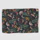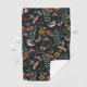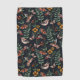 Esta toalla de golf incluye colibríes, pájaros, mariposas, polillas, helechos, setas y flores sobre un fondo azul oscuro.