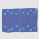 Estrellas rojas, blancas y azules con un patrón aleatorio sobre fondo azul. Tema patriótico americano. Diseño moderno y elegante.