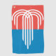 Toalla de golf con un diseño con la bandera de Kansas City, Missouri. Una bandera roja y ondulada con un emblema blanco estilizado en el centro