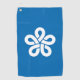 Toalla de golf con un diseño con la bandera de la prefectura de Fukuoka en Japón (福 岡 県 , Fukuoka-ken), una bandera azul con símbolo blanco