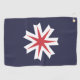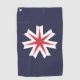 Toalla de golf con un diseño con la bandera de la prefectura de Hokkaido en Japón (北 海 道 , Hokkaidō), bandera azul con símbolo blanco y rojo