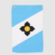 Toalla de golf con bandera de la ciudad de Madison, Wisconsin; bandera azul claro y blanca con cruz negra y círculo amarillo en el centro