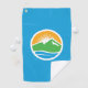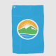 Toalla de golf un diseño con la bandera de Provo, Utah. Una bandera azul con el logo de la ciudad de Provo en el centro. El logo representa el lago Utah y los picos de montaña cercanos con el sol naciente al fondo