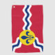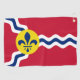 Toalla de golf con bandera de la ciudad de St. Louis; bandera roja con olas blancas y azules y fleur-de-lys azules en círculo amarillo