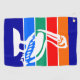 Toalla de golf con diseño con bandera de San Petersburgo, Florida. Bandera de rayas naranjas, rojas, verdes, azules y azul marino con un símbolo de pelícano blanco