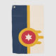 Toalla de golf con diseño con bandera de Tulsa, Oklahoma. Bandera beige y azul marino con un escudo Osage dorado que contiene un círculo rojo y una estrella beige de seis puntas