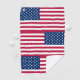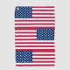 La bandera de los Estados Unidos de América, a menudo conocida como la bandera estadounidense o la bandera estadounidense, es la bandera nacional de los Estados Unidos. Se compone de trece franjas horizontales iguales de rojo (superior e inferior) alternando con blanco, con un rectángulo azul en el cantón (denominado específicamente "unión") con cincuenta estrellas pequeñas, blancas y de cinco puntas dispuestas en nueve filas horizontales de desvío, donde las filas de seis estrellas (superior e inferior) alternan con filas de cinco estrellas. Las 50 estrellas de la bandera representan los 50 estados de los Estados Unidos de América, y las 13 franjas representan a las trece colonias británicas que declararon su independencia del Reino de Gran Bretaña, y se convirtieron en los primeros estados en los apodos estadounidenses para la bandera incluyen las Estrellas y las Estripas, la Gloria Vieja y el Banner de Star-Spangled.