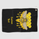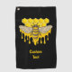 Abeja de miel con alas abiertas icono sobre colmena de abejas y gotas de miel. Color de fondo personalizado. Texto personalizado.