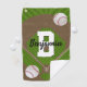 Esta toalla de golf personalizada tiene un diseño de aficionados al fútbol con un campo de béisbol y dos pelotas de béisbol ilustradas. Personalizó esta toalla de golf con un nombre o apellido y una inicial. Un gran regalo deportivo personalizado para regalar al fanático del béisbol en tu vida que juega al golf.