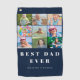 Toalla de golf de collage de fotos de Best Dad 9 con nombres. Reemplace las fotos con las suyas y cambie el texto. Fácil de hacer desde la página del producto. Tipografía blanca sobre fondo azul marino.