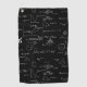 Esta toalla negra de golf es perfecta para los amantes de las matemáticas que les encanta mostrar sus habilidades en el campo. La toalla presenta fórmulas y ecuaciones en blanco, lo que hace que sea una buena forma de mostrar tu conocimiento mientras disfrutas de una ronda de golf. Ilustrado y diseñado por Patricia Álvarez.