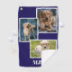 This blue custom dog photo collage personalized golf towel features three editable photos and a custom monogram that you can personalize. Upload your photos in the listing editor to create your own design.