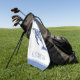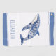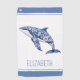 Esta toalla de golf azul y blanca de inspiración costera cuenta con un delfín de tela floral y puede ser personalizada con su elección de nombre o texto especial. Regalos personalizados divertidos para bolsas de regalo de playa.