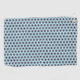 Los patrones geométricos intrincados se repiten en una formación simétrica utilizando tonos azules, negros y blancos. El diseño se centra en los motivos circulares dispuestos para crear un efecto visualmente atractivo y equilibrado.
