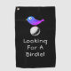 "Buscando un pájaro" con colorido pájaro, arte de pelota de golf y texto blanco. Personalice esta Toalla de Golf con su mensaje y ríya a su alrededor de los enlaces. Viene en varios colores. El arte de la pelota de golf se puede eliminar o colocar en otro lugar del diseño.