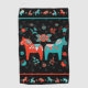 Esta toalla de golf tiene un diseño de caballo folk dala sueco con flores de arte folclórico a juego en los colores de la bandera sueca de verde azulado y rojo sobre fondo negro. En la parte superior e inferior hay una hilera de flores y animales de dala más pequeños. Puede hacer que el patrón de fondo de esta toalla sea más pequeño o más grande.