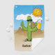 Personalizado de cactus sonrientes con gafas de sol en el paisaje desértico sosteniendo una taza de cerveza y dando pulgares hacia arriba. texto personalizado.