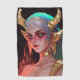 un lindo chica de ciberdemonio con cuernos y decoraciones de neón y oro.