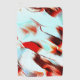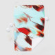 Impreso con textura áspera y manchas cyan de color pardo a rojo y blanco.